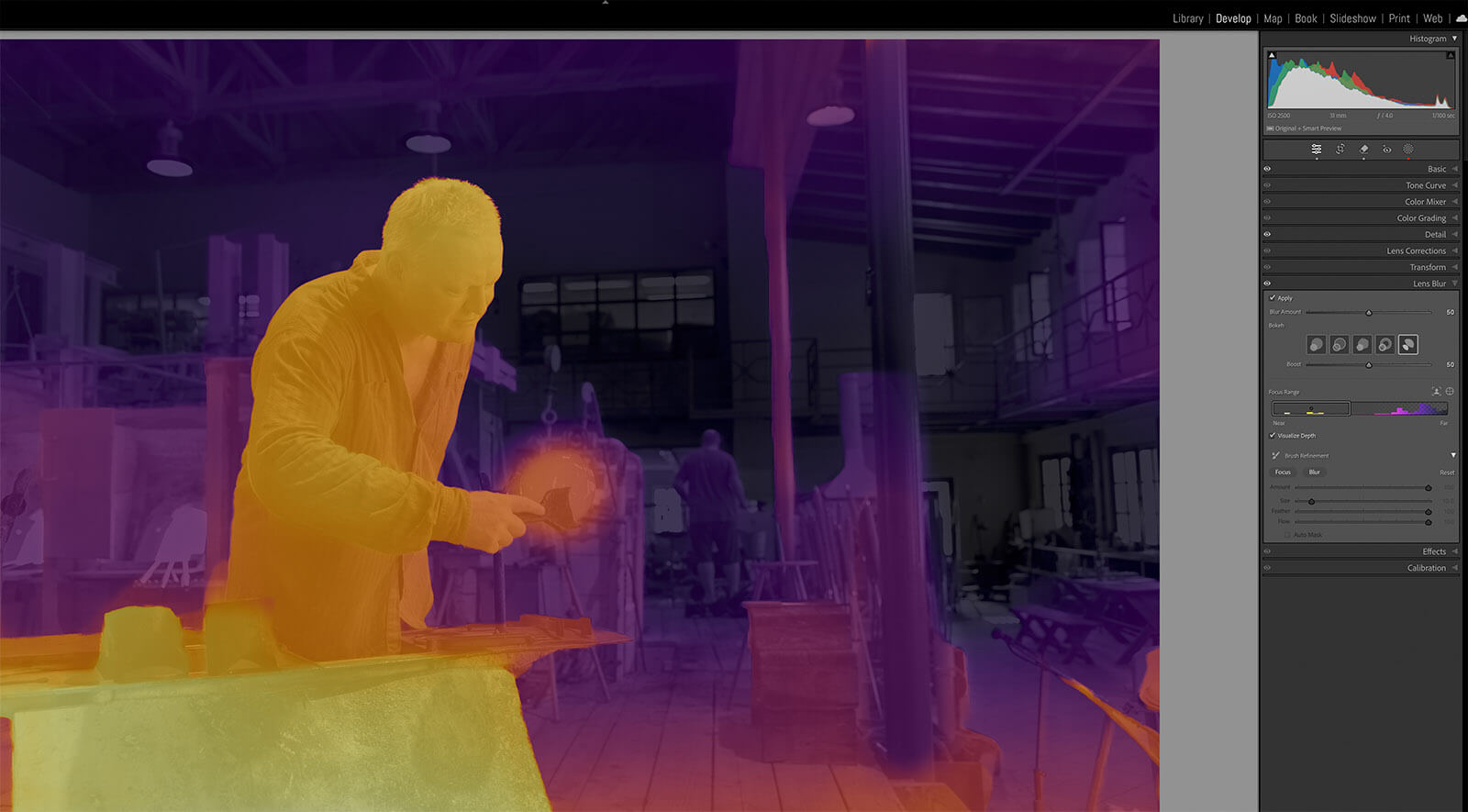 Lens Blur in the Develop module now features AI-assisted automatic presets. Depth maps can now be generated using AI, allowing subjects to be separated from the background and receive the blur effects. This feature is perfect for bringing attention to the subject while creating a beautiful cinematic background.